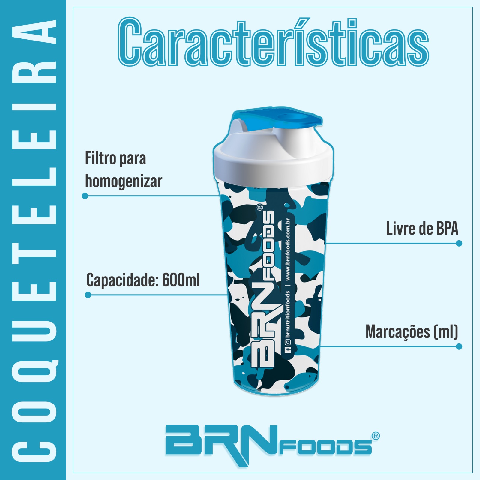 A Coqueteleira BRN Foods é um acessório funcional desenvolvido para facilitar o preparo de shakes proteicos e bebidas, trazendo praticidade para a rotina.