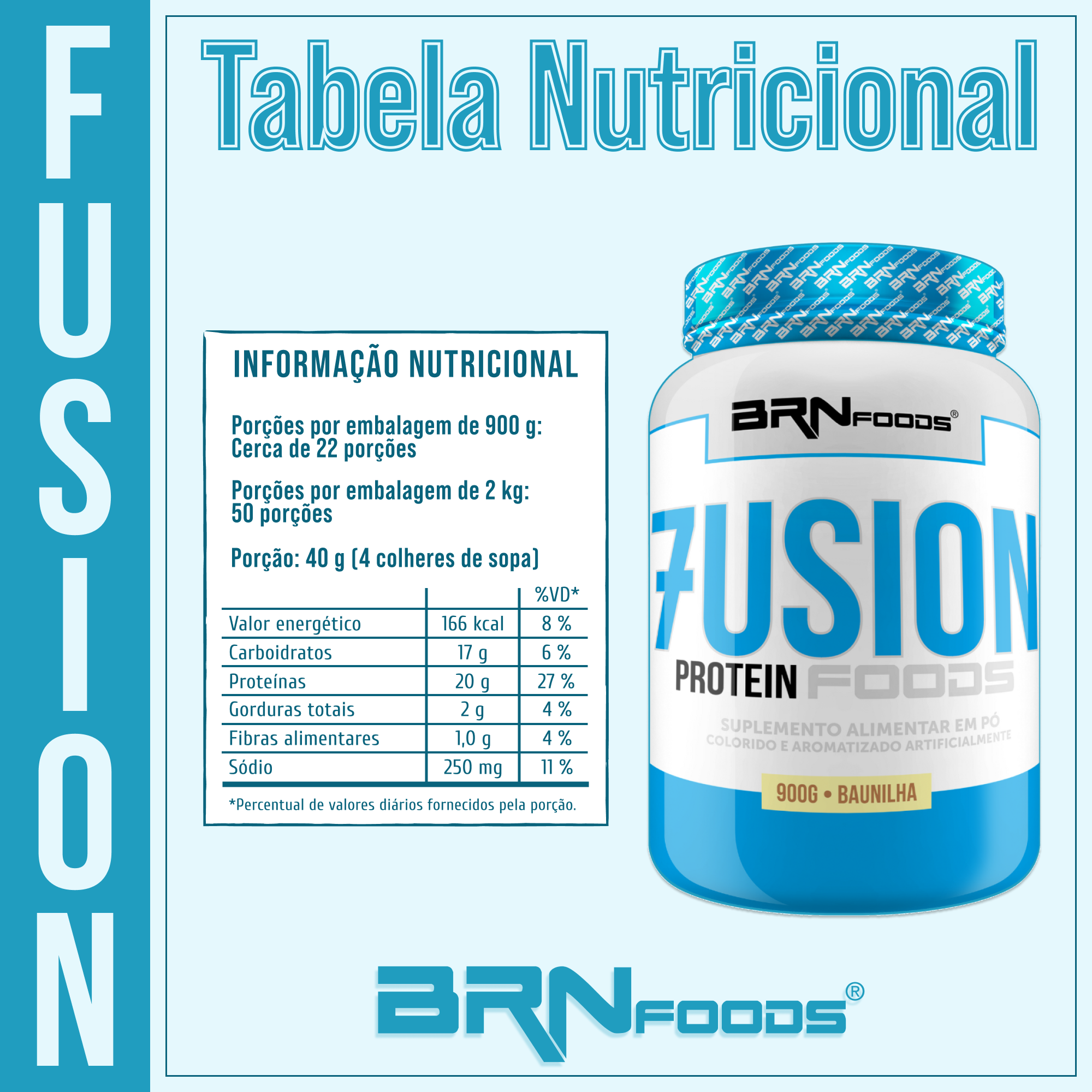 Além de ser uma excelente fonte de proteínas, o Fusion Protein Foods se destaca por ter baixo teor de gorduras totais e saturadas e níveis reduzidos de carboidratos, tornando-o uma opção equilibrada para quem deseja desenvolver massa magra de forma saudável e eficaz.