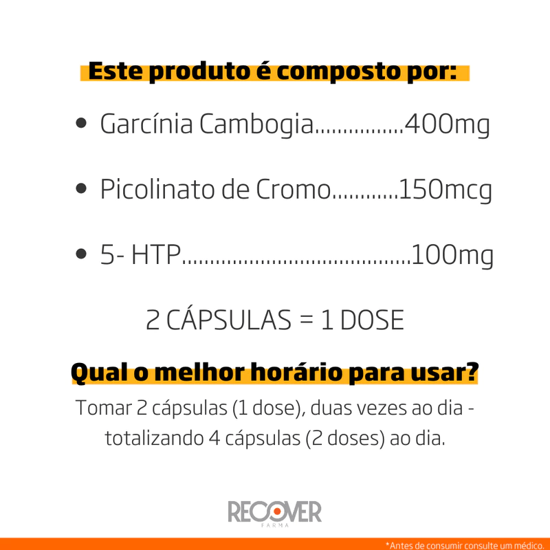 Garcínia Cambogia + Picolinato de Cromo + 5-HTP 120 Cápsulas – Recover Farma