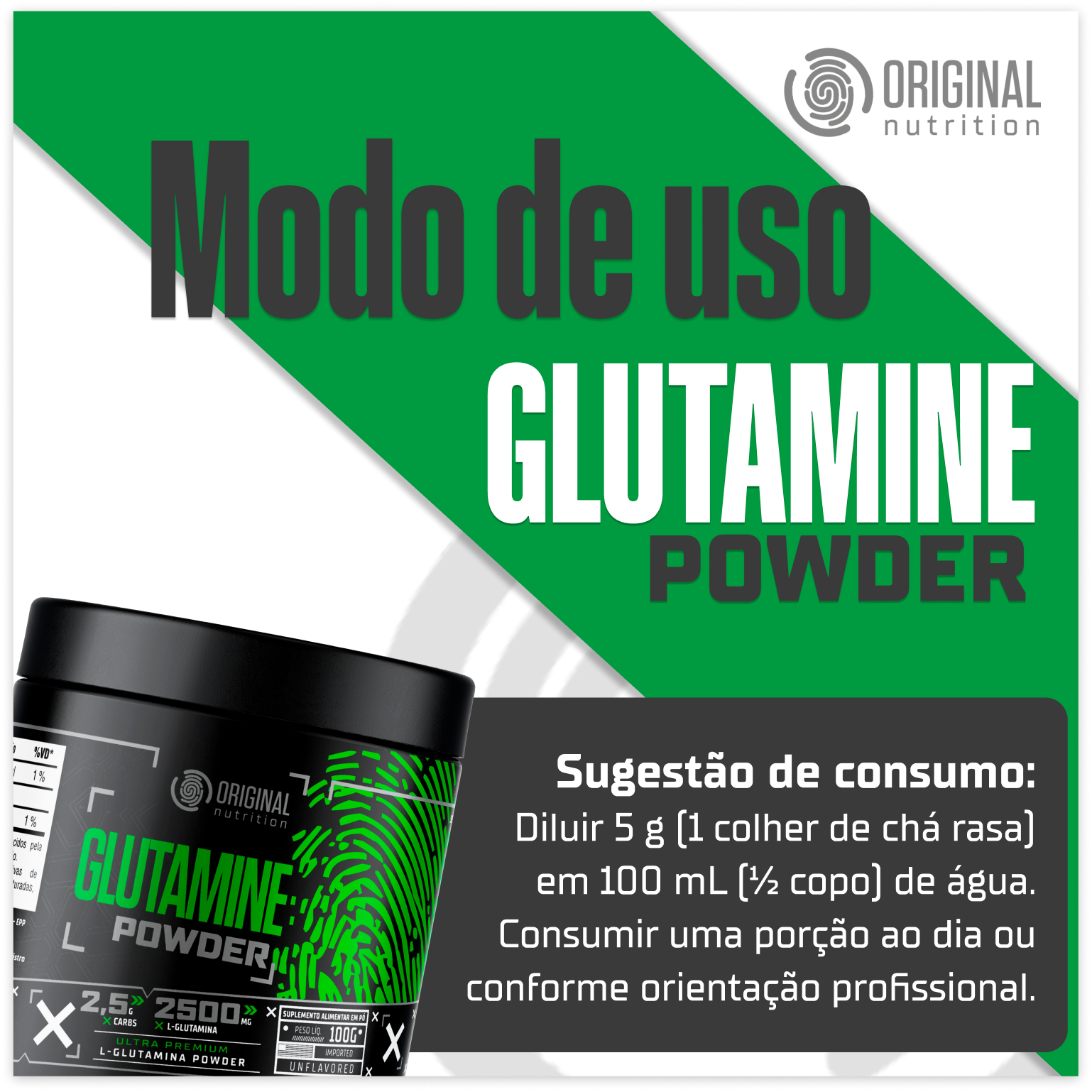 A Glutamina ON apresenta fácil dissolução e pode ser adicionada à água, sucos ou shakes, garantindo praticidade no preparo e consumo diário.