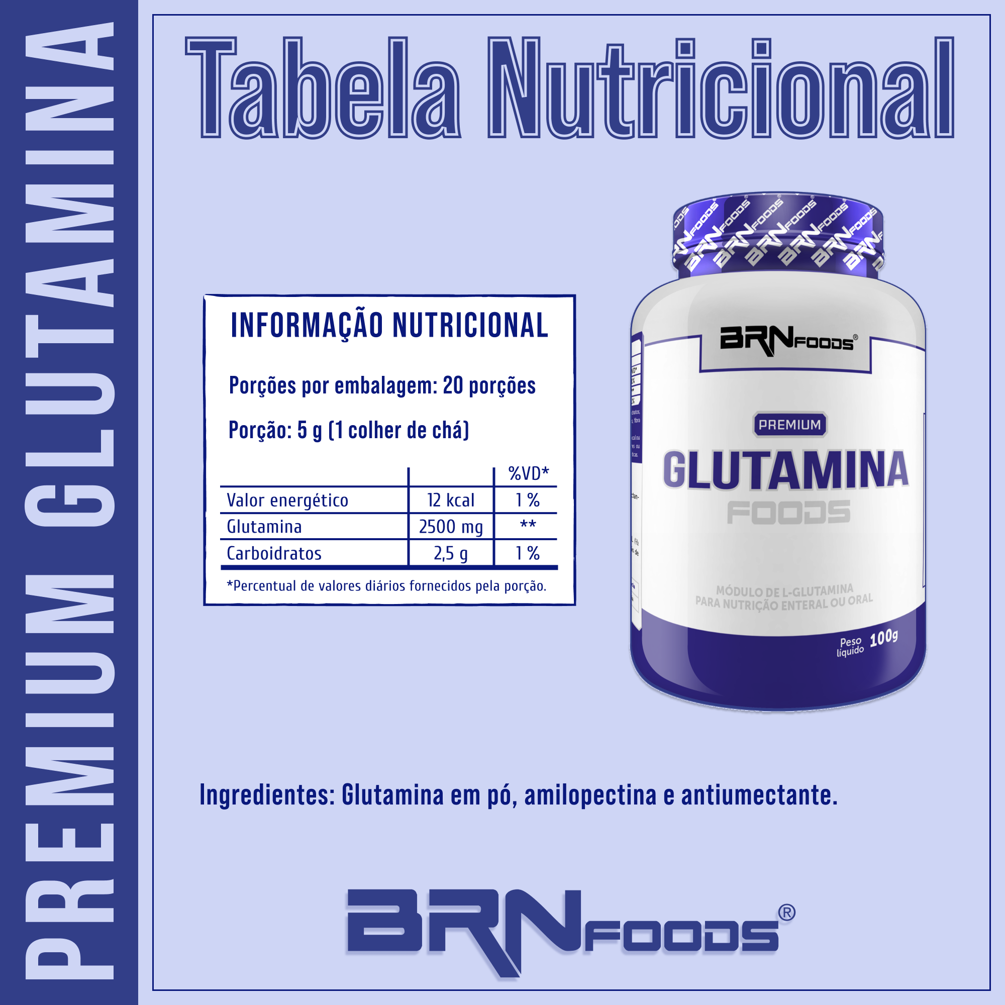 A Glutamina Premium é formulada com glutamina, um aminoácido importante no metabolismo de proteínas e no equilíbrio do nitrogênio no organismo.
