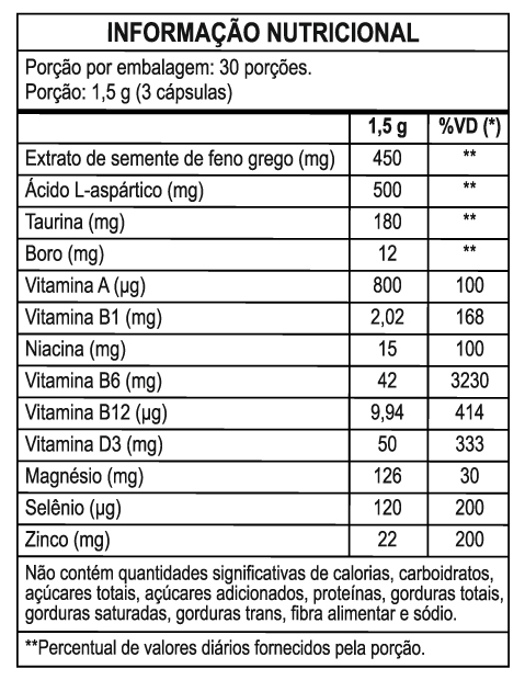 Sua composição reúne ingredientes amplamente utilizados em suplementos voltados ao público masculino, oferecendo uma alternativa prática para o consumo diário.