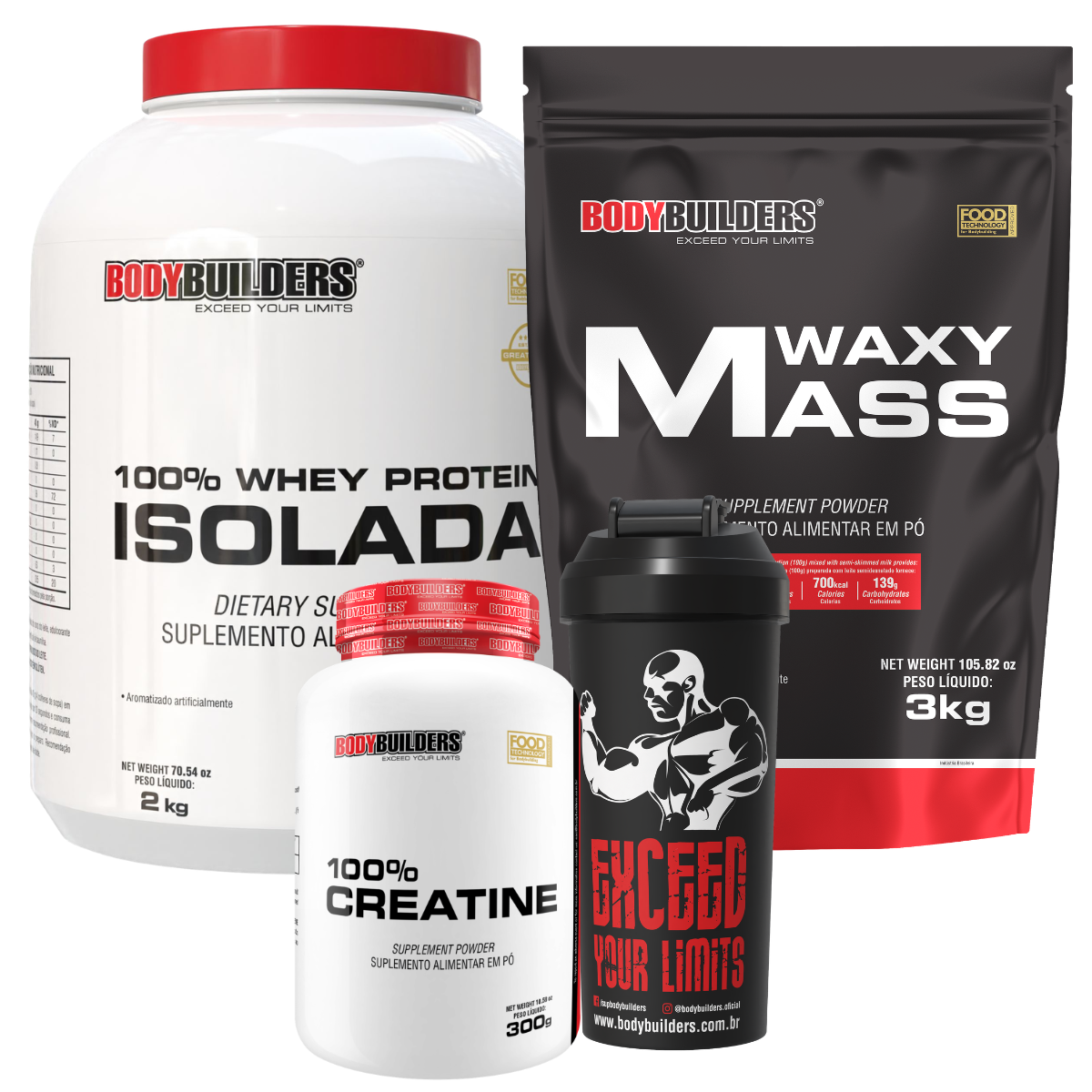Kit 100% Isolada 2kg + Waxy Mass 3kg + Creatina 100% 300g + Coqueteleira 600ml – Bodybuilders