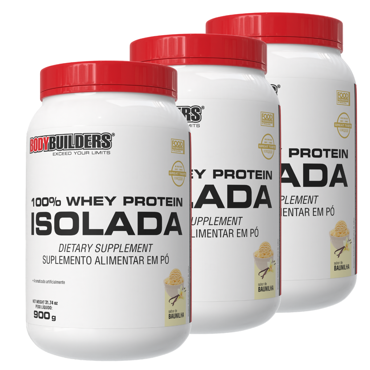 Kit 3x Whey Protein 100% Isolada 900g – Bodybuilders