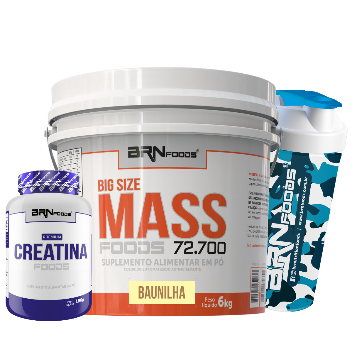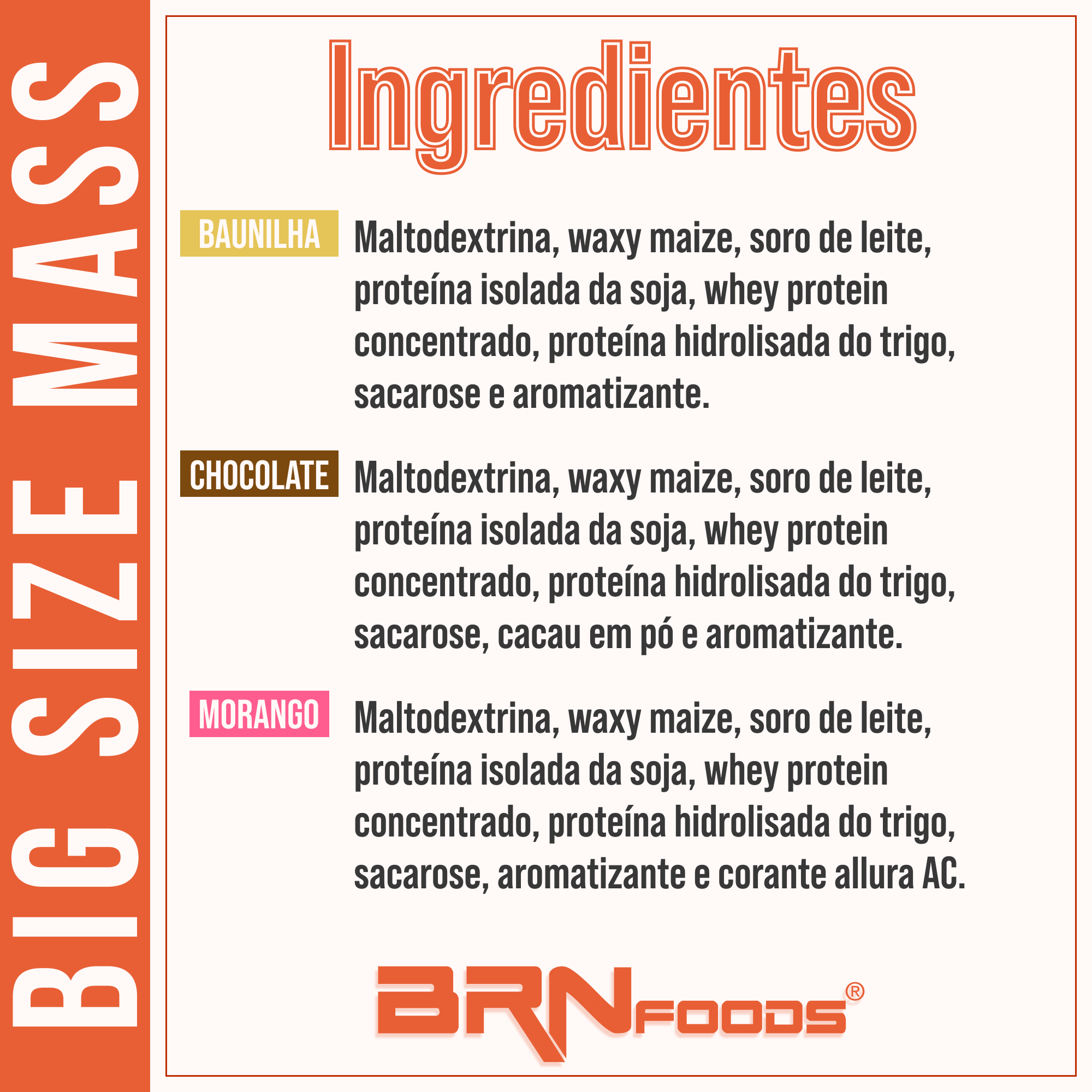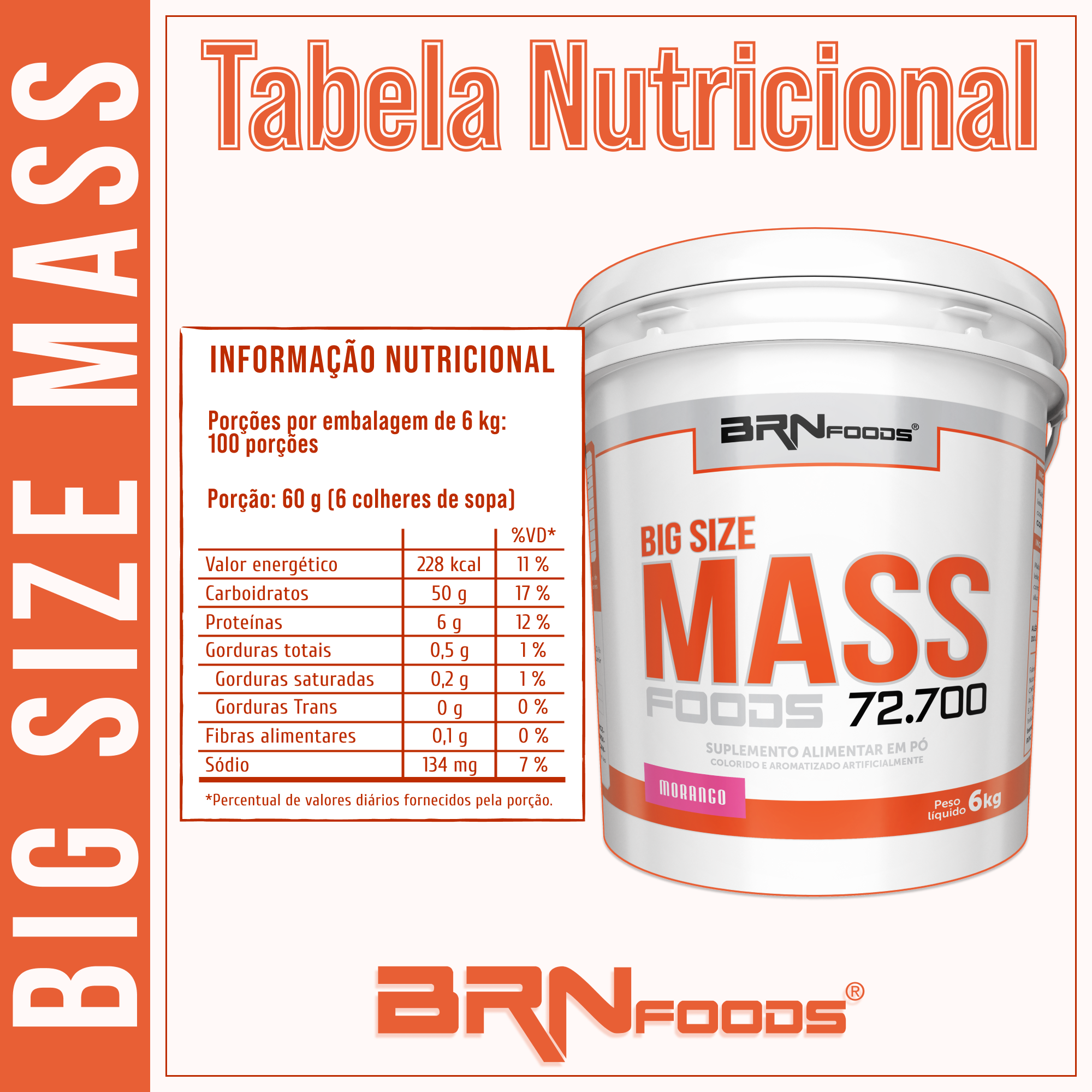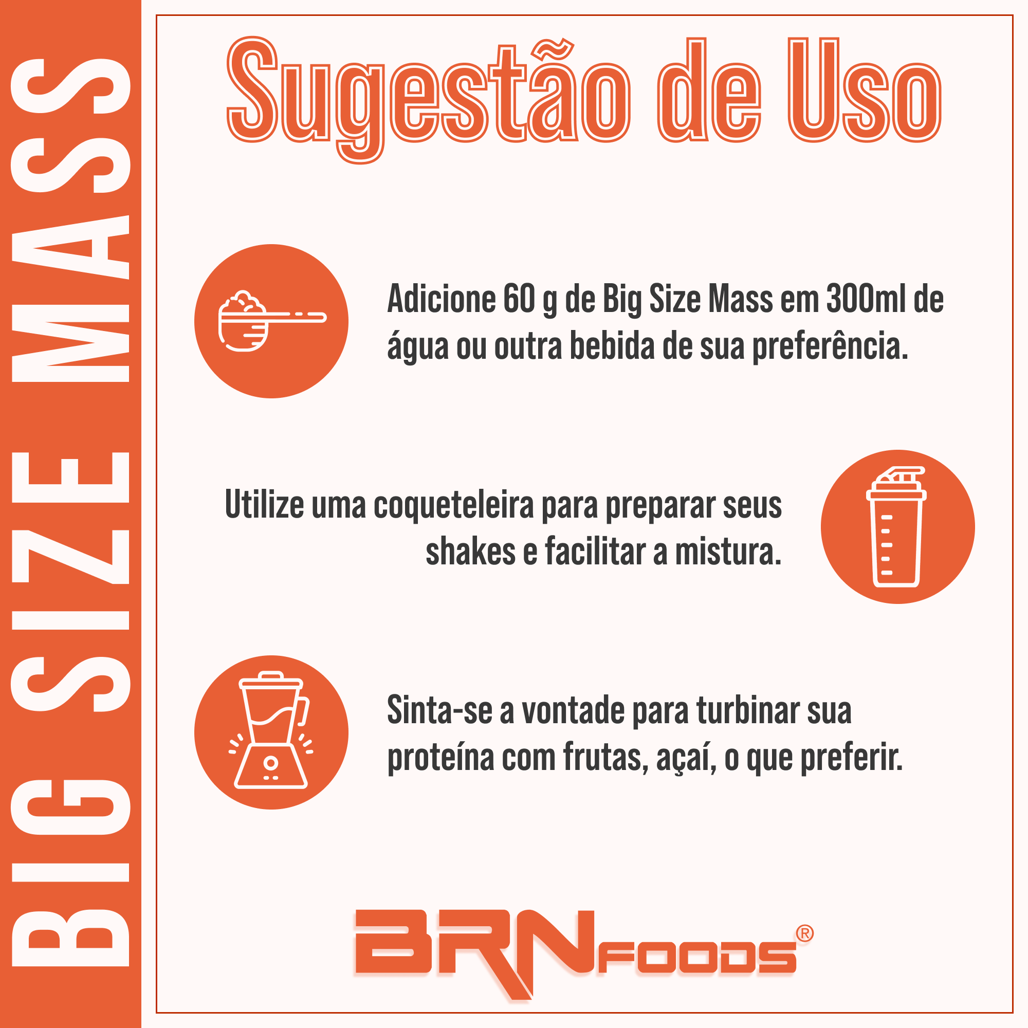 O Big Size Mass é um suplemento em pó formulado com proteínas e carboidratos, sendo uma opção prática para complementar a ingestão calórica diária.