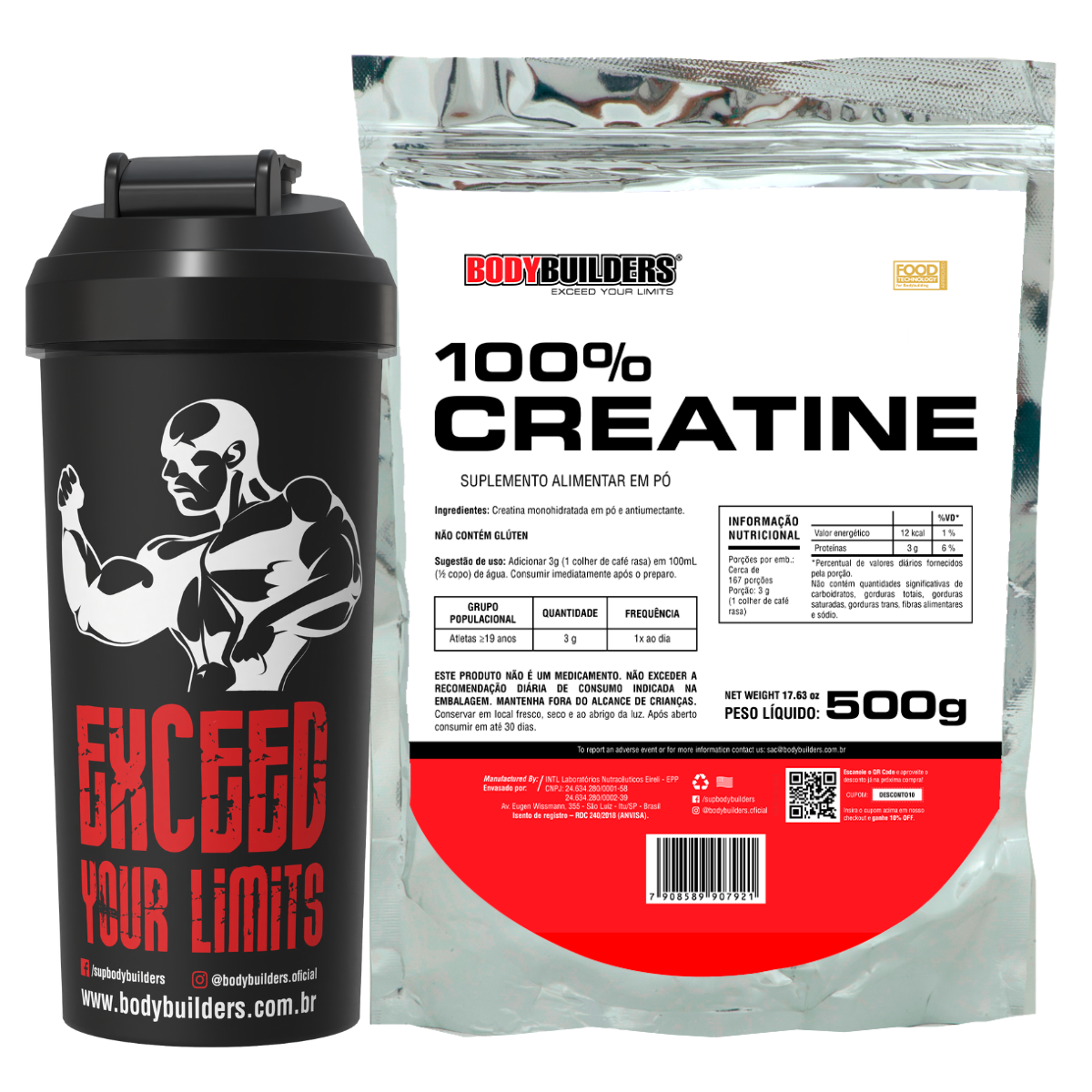 Kit Creatina 100% Pura 500g + Coqueteleira 600ml – Bodybuilders