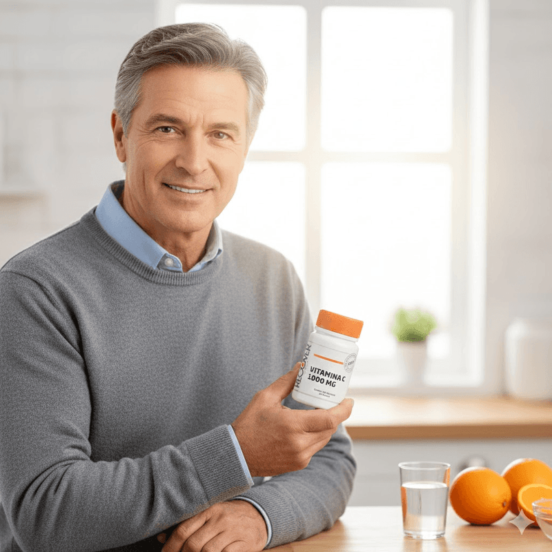 Para quem busca a Vitamina C para pele, este suplemento pode auxiliar na manutenção de uma aparência saudável e na cicatrização de feridas, contribuindo para a renovação celular e o impacto do envelhecimento natural.