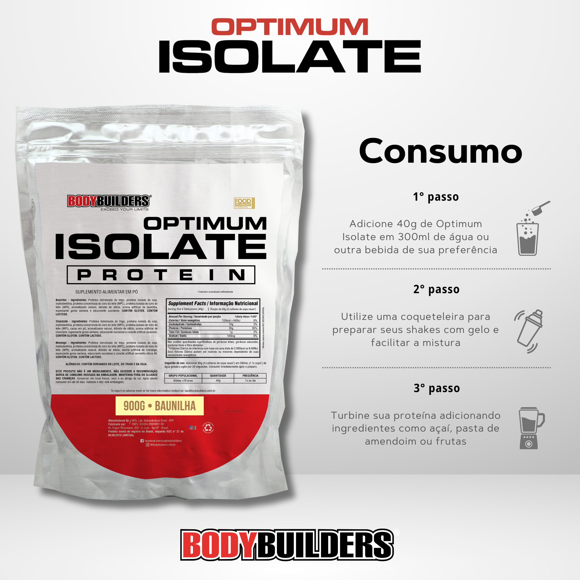 Suplemento proteico formulado com um blend exclusivo das melhores fontes de proteína: Whey Protein Isolado, Proteína Hidrolisada do Trigo, Caseína, Proteína Isolada da Soja e Albumina. Oferece diferentes tempos de absorção, garantindo uma liberação gradual de aminoácidos.